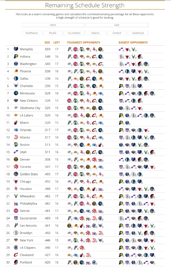 排名越高剩余赛程难度越高,排名越低剩余赛程难度越低!从左到右依次是:SOS:剩余对手的平均胜率;LEFT:剩余场数;最难打的对手罗列;最好打的对手罗列。...
